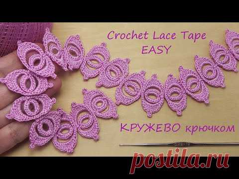 КРУЖЕВО простое вязание крючком МАСТЕР-КЛАСС для начинающих КАЙМА Easy to Crochet Tape Lace pattern
