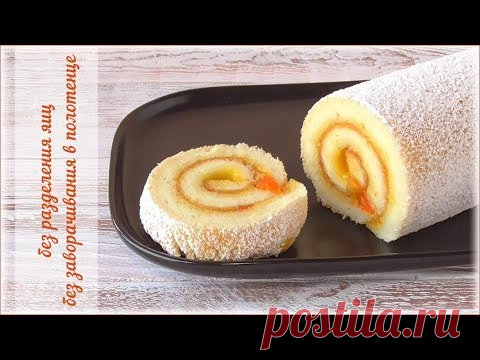 Бисквитный рулет, который получится у каждого! Без заворачивания в полотенце! Без разделения яиц!