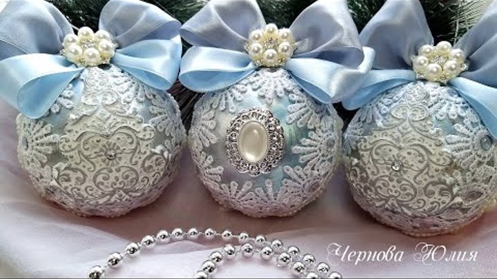ЛЕГКО ПРЕВРАЩАЕМ ПРОСТЫЕ ЁЛОЧНЫЕ ШАРЫ В ВОЛШЕБНЫЕ//ЕЛОЧНЫЕ ИГРУШКИ С ЛЕПНИНОЙ, БРОШАМИ И КРУЖЕВОМ