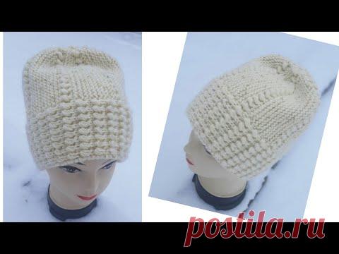 Супер красива шапочка поперечним способом в'язання. Модна,тепла,зручна.Красива верхівка.