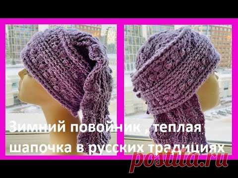 Зимний Головной , старинный УБОР - повойник , вязание КРЮЧКОМ , crochet hat ( Ш № 216)