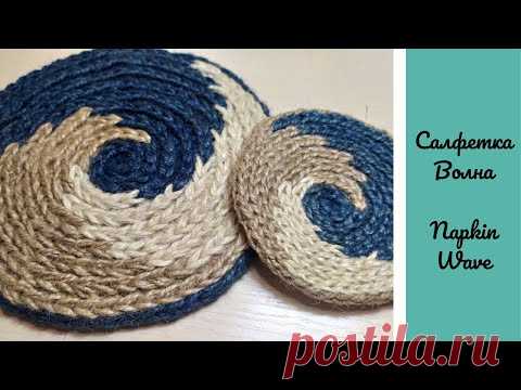 Салфетка подставка под горячее крючком из джута Волна|Napkin, coaster for hot hook made of jute Wave