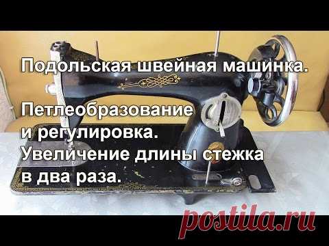 Подольская швейная машина. Петлеобразование и регулировка. Увеличение длины стежка. Видео № 259.