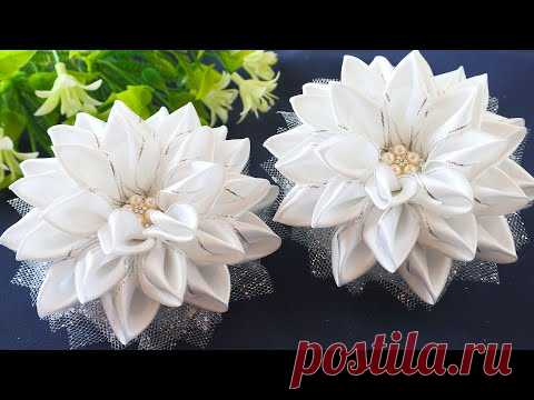 (120) БЕЛЫЕ БАНТЫ в ШКОЛУ. Цветы из атласных лент и фатина - YouTube