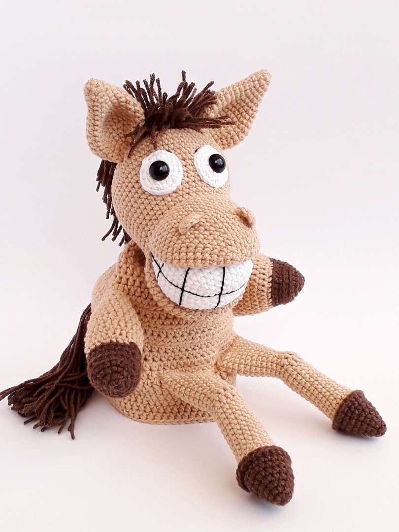 PDF Конь Хоси крючком. FREE crochet pattern; Аmigurumi toy patterns. Амигуруми схемы и описания на русском. Вязаные игрушки и поделки своими руками #amimore - перчаточная игрушка в виде коня, развивающая кукла на руку, лошадь, лошадка для кукольного театра.