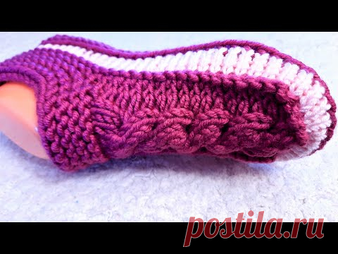 Домашние тапочки следки спицами. НОВЫЙ способ вязания! Подробный мастер класс