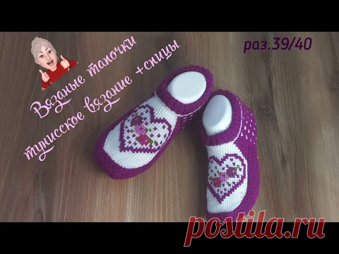 Вязаные тапочки 💜новая удобная модель👌тунисским крючком +спицы
