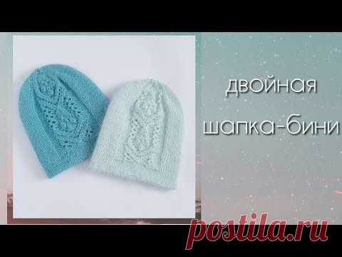 Двойная шапка бини с красивым узором/вяжем из пуха норки