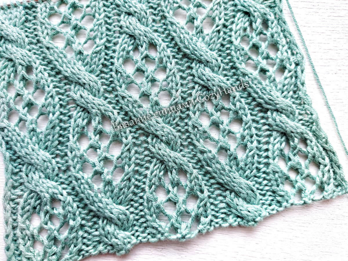 Шикарный ажурный узор со жгутами для вязания палантина, пуловера | Вязание спицами CozyHands | Дзен