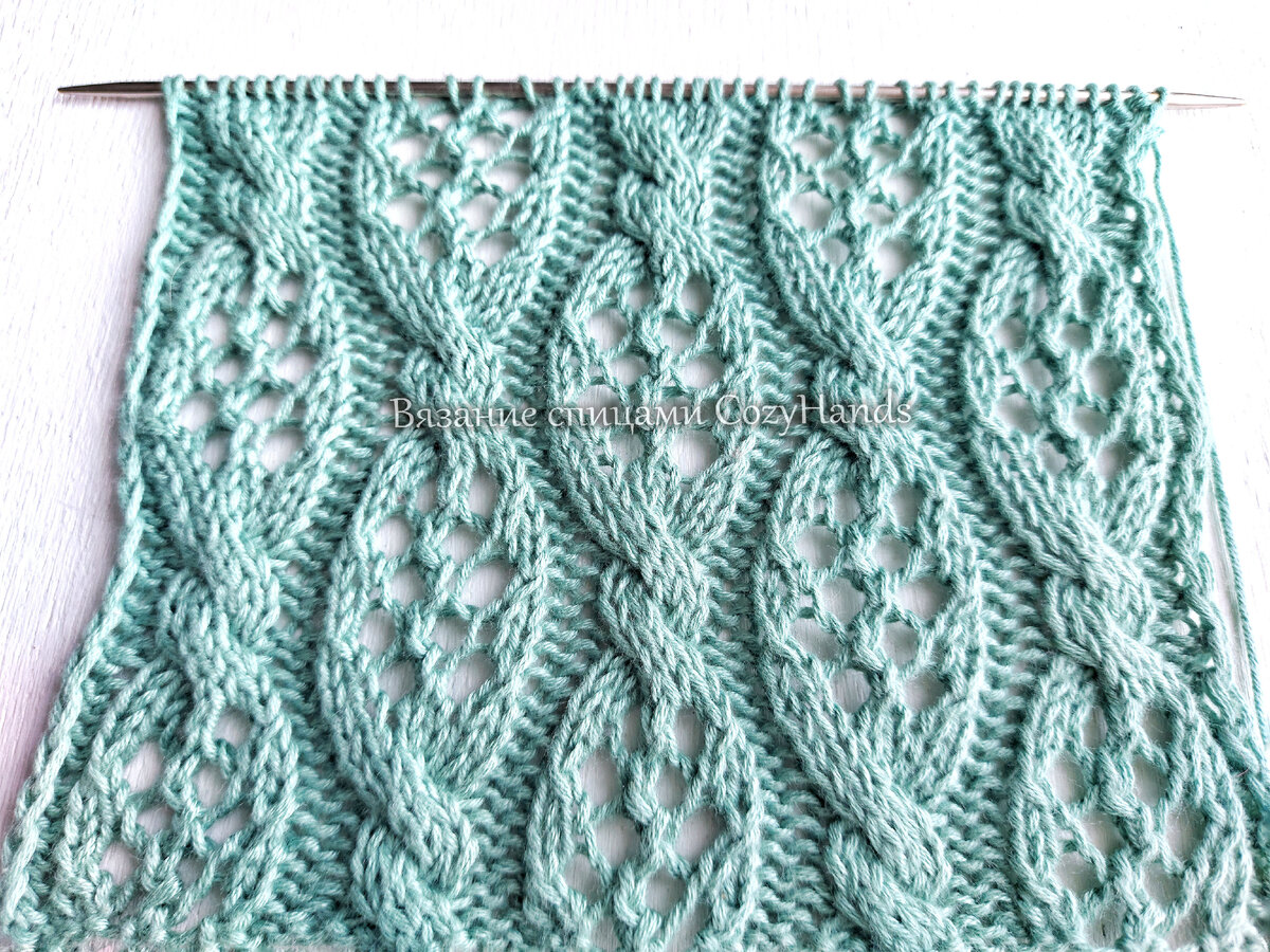 Шикарный ажурный узор со жгутами для вязания палантина, пуловера | Вязание спицами CozyHands | Дзен