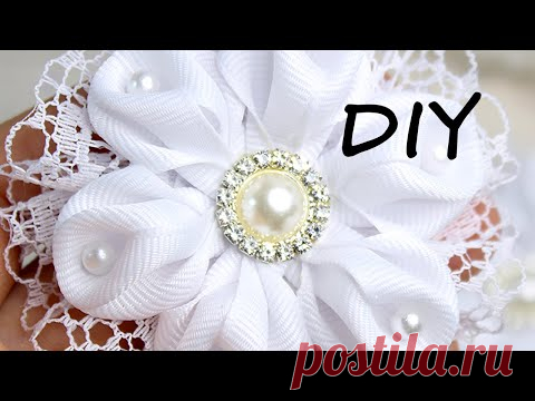 (125) 🌸 Цветок с жемчужиной из лент 2,5 см 🌸 Ribbon flower 🌸 - YouTube
