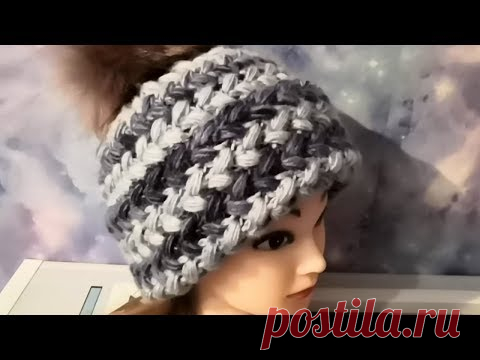 Шапка пышными столбиками, крючком. Шапочка зимняя крючком.