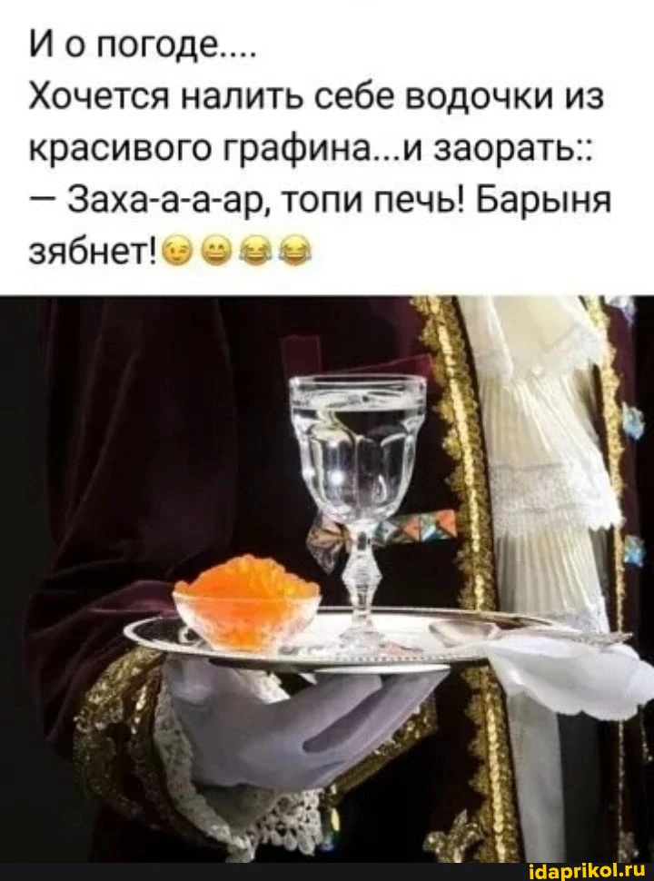 И о погоде... Хочется налить себе водочки из красивого графина...и заорать:: - Заха-а-а-ар, топи печь! Барыня зябнет! - ) / АйДаПрикол .)