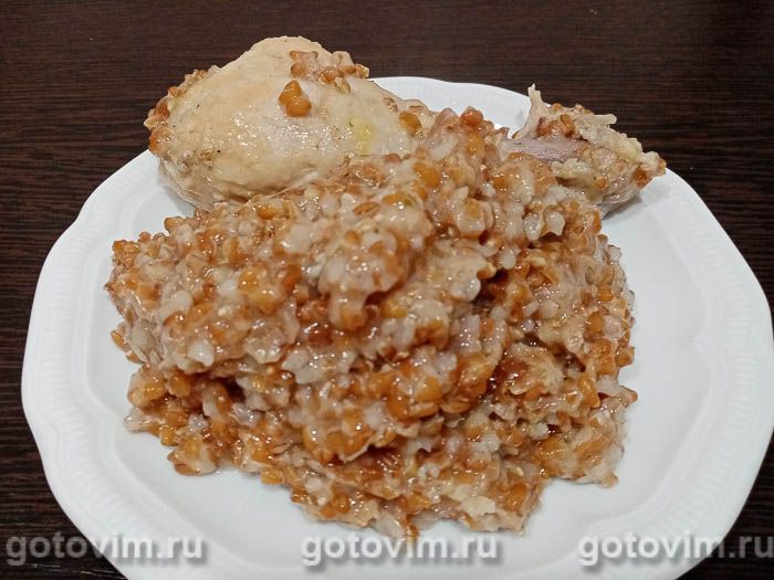 - Заливаем 4 стаканами холодной воды, закрываем плотной крышкой. Как только вода закипит, уменьшаем нагрев и варим около часа до готовности мяса и крупы.