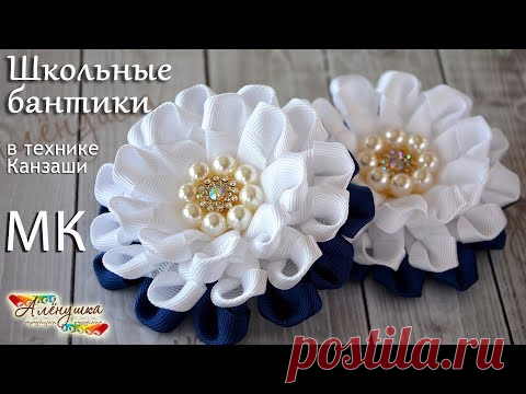(129) ШКОЛЬНЫЕ БАНТИКИ ИЗ РЕПСА/ КАНЗАШИ/ЦВЕТЫ ИЗ ЛЕНТ /KANZASHI FLOWER BOWS - YouTube