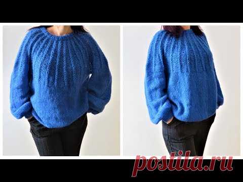 Свитер спицами, кашемир, круглая кокетка. Видео МК | Вязание для женщин спицами. Схемы вязания спицами