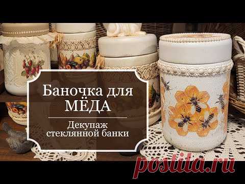 💛 Красивая Баночка для МЁДА 💛 - Декупаж стеклянной банки для меда - DIY Honey bee - Kitchen decor