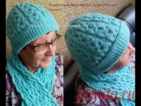 Шапка и шарф спицами 3D узором