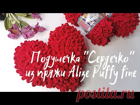 Подушка "Сердечко" из пряжи Alize Puffy Fine
