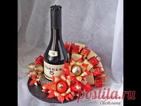 МК Декор алкоголя с конфетами. Ч. 2. Сборка композиции. Подарок мужчине. Свит-дизайн.