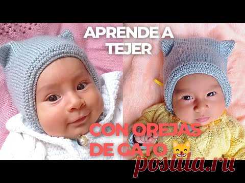 gorra con orejas de gato tejido en dos agujas para tu bebé