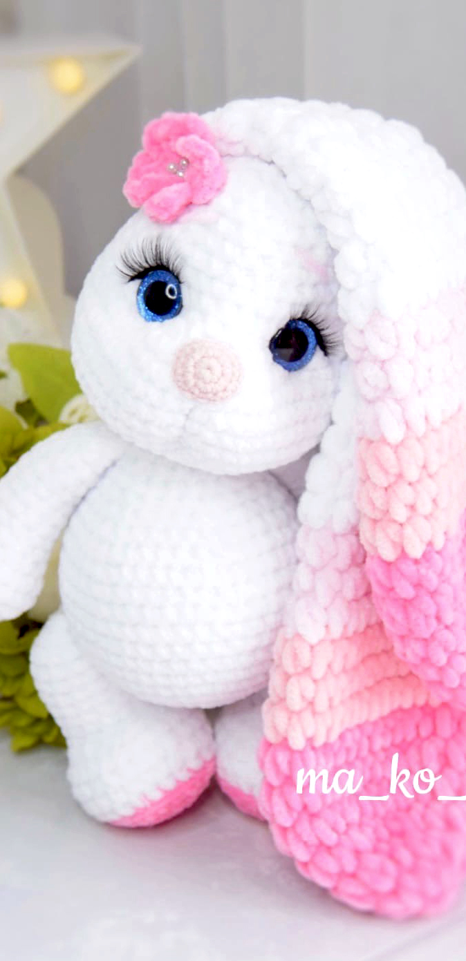 PDF Зайка Звёздочка крючком. FREE crochet pattern; Аmigurumi animal patterns. Амигуруми схемы и описания на русском. Вязаные игрушки и поделки своими руками #amimore - плюшевая зайка, большой заяц из плюшевой пряжи, зайчик, кролик, зайчонок, крольчонок.
