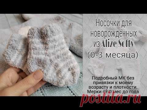 Плюшевые носочки для малышей из Alize Softy спицами. Подробный МК без привязки к плотности и размеру