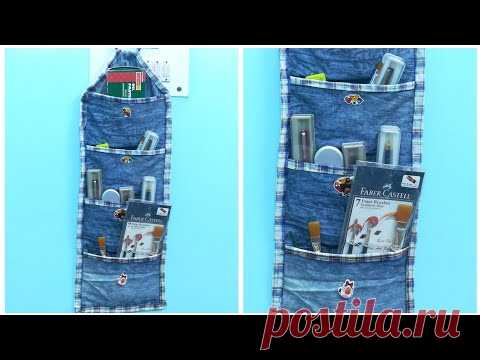 DIY Multipurpose Organizer form Old Jeans/Denim - Old Jeans Reuse Ideas