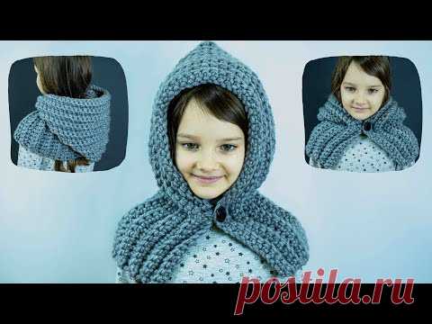 Теплый капюшон-шарф/снуд на пуговице - свяжет даже новичок быстро и просто!