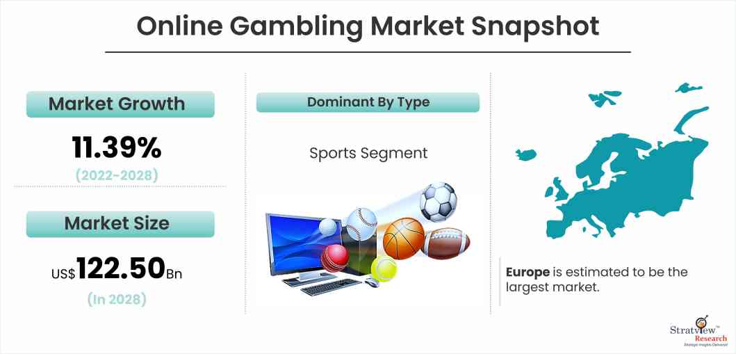 Online Gambling Market Projected to Witness a Double-Digit CAGR During 2022-2028 The Online Gambling Market was expected to grow from USD 57.36 billion in 2021 to USD 122.50 billion by 2028 at a healthy CAGR of 11.39% during the forecast period (2022-2028). Online gambling, also referred to as online betting or internet gambling consists of a wide range of online games. It refers to any kind of gambling conducted on the internet.