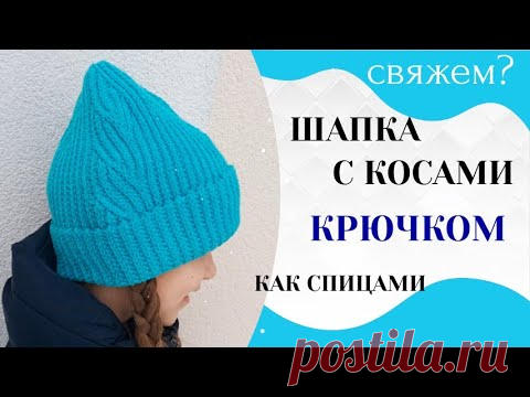 ШАПКА С КОСАМИ ПОПЕРЕЧНОЕ ВЯЗАНИЕ крючком как спицами / Мастер-класс