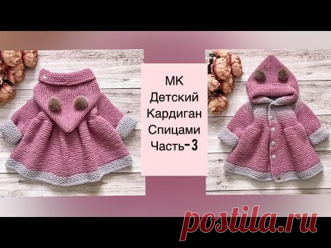Детский кардиган или пальто спицами для девочки- часть 3. Размер 12-18 мес.