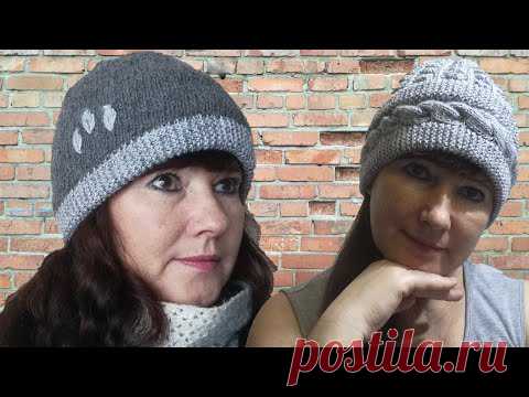 Двухсторонняя шапка женская спицами. Подклад к теплой шапке. МК Листочки