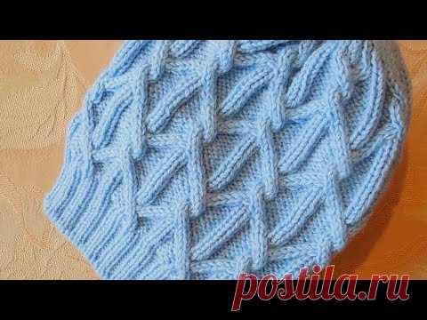 ВЯЗАНАЯ ШАПКА. УЗОР "РОМБЫ". KNITTING HAT. HOW TO KNIT A HAT. МАСТЕР-КЛАСС
