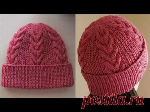 ВЯЗАНАЯ ШАПКА ПОЛУПАТЕНТНЫМ УЗОРОМ С КОСАМИ. МАСТЕР-КЛАСС. KNITTING HAT. HOW TO KNIT A HAT