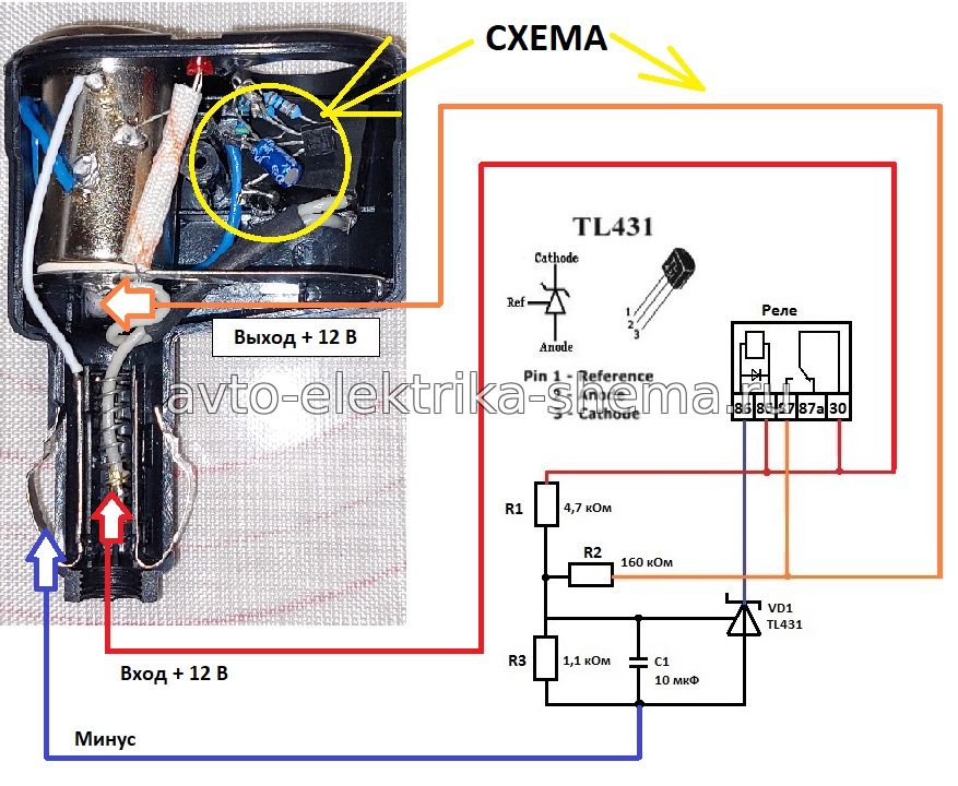 Переходник в прикуриватель на 12 вольт с авто включением и отключением