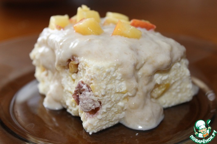 "Творожная бабка" под банановым соусом на пару Кулинарный рецепт
