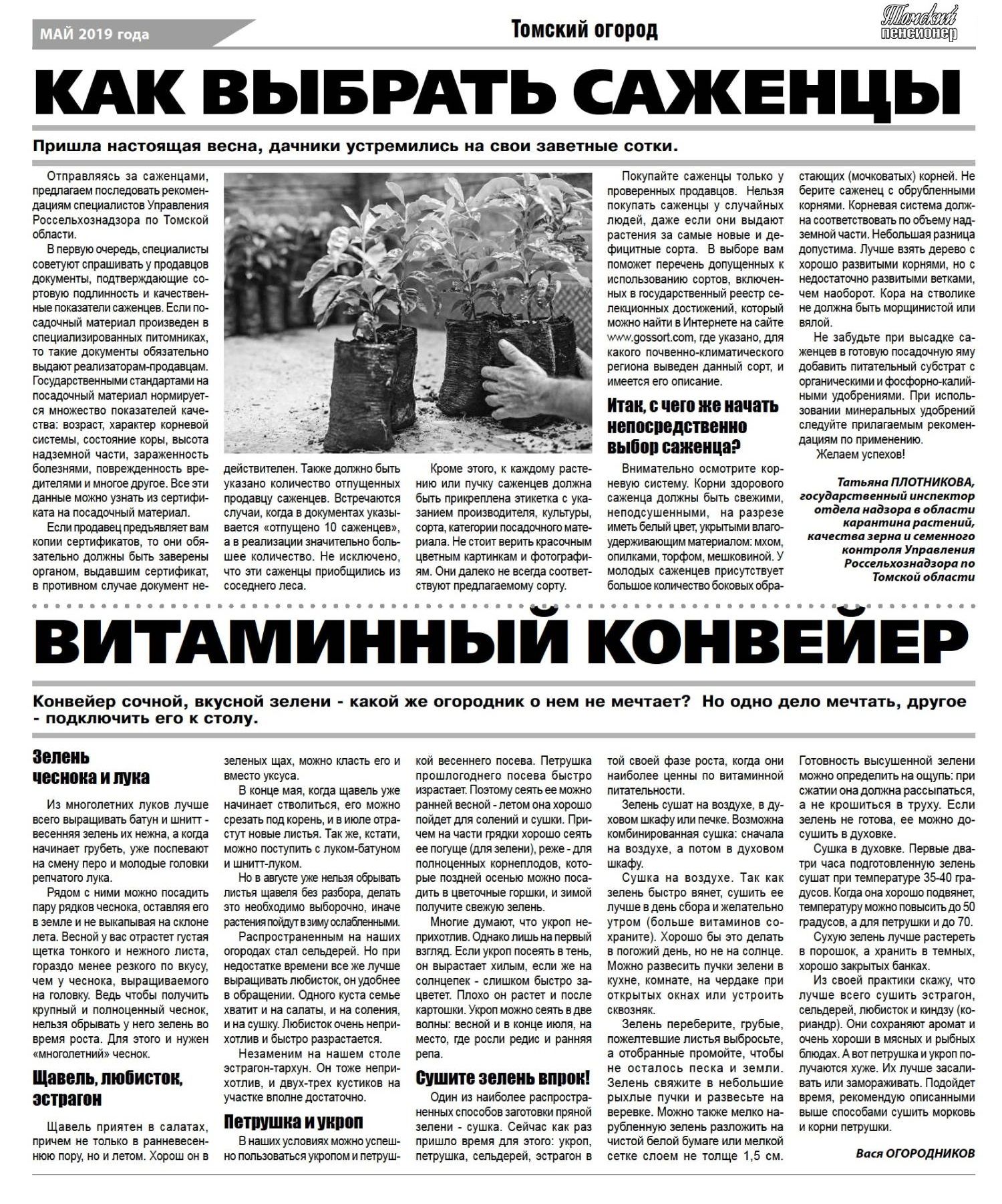 Как выбрать саженцы. Витаминный конвейер сочной зелени