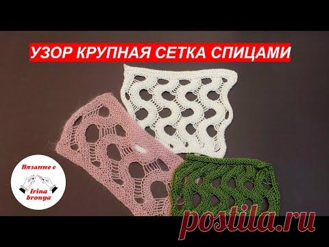 Узор крупная сетка спицами.