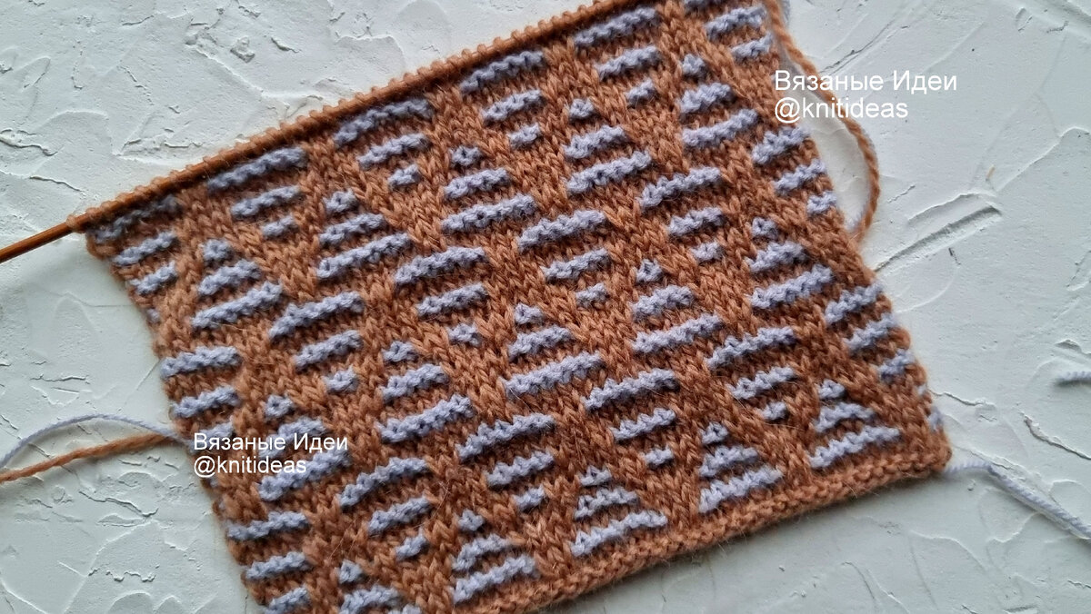 Красивый двухцветный узор "Зигзаги" спицами | Вязаные идеи. Интересные узоры. | Дзен
