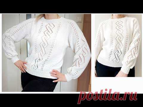 Женский джемпер спицами "Воздушное ☁️ облако“ Анатомический росток Реглан сверху Описание