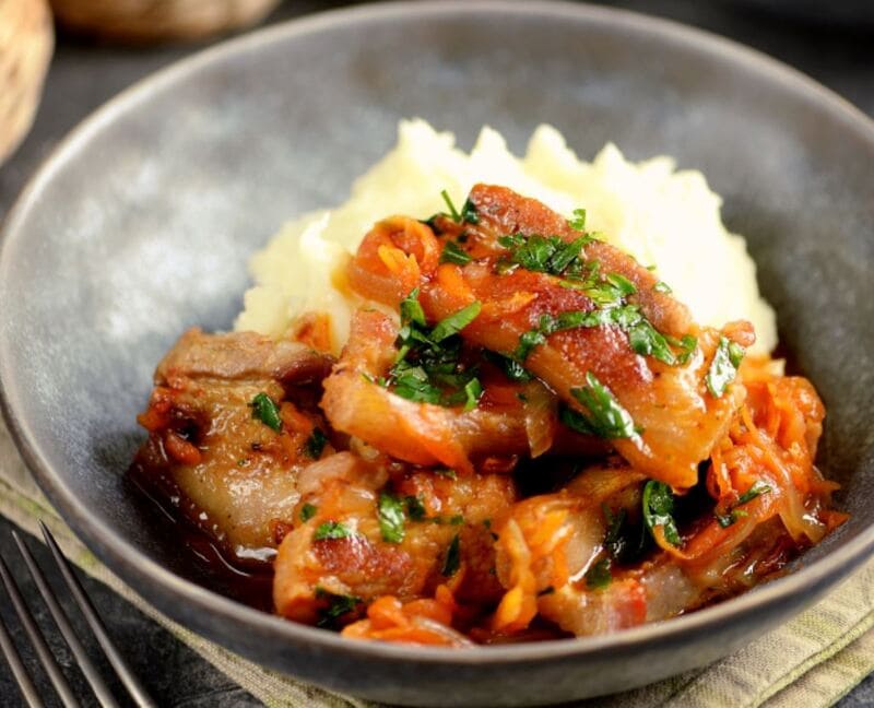 Тушеная Свиная Грудинка Тушеная свиная грудинка получается сочной, мягкой и с очень вкусной подливой. Грудинка готовится очень просто и быстро.