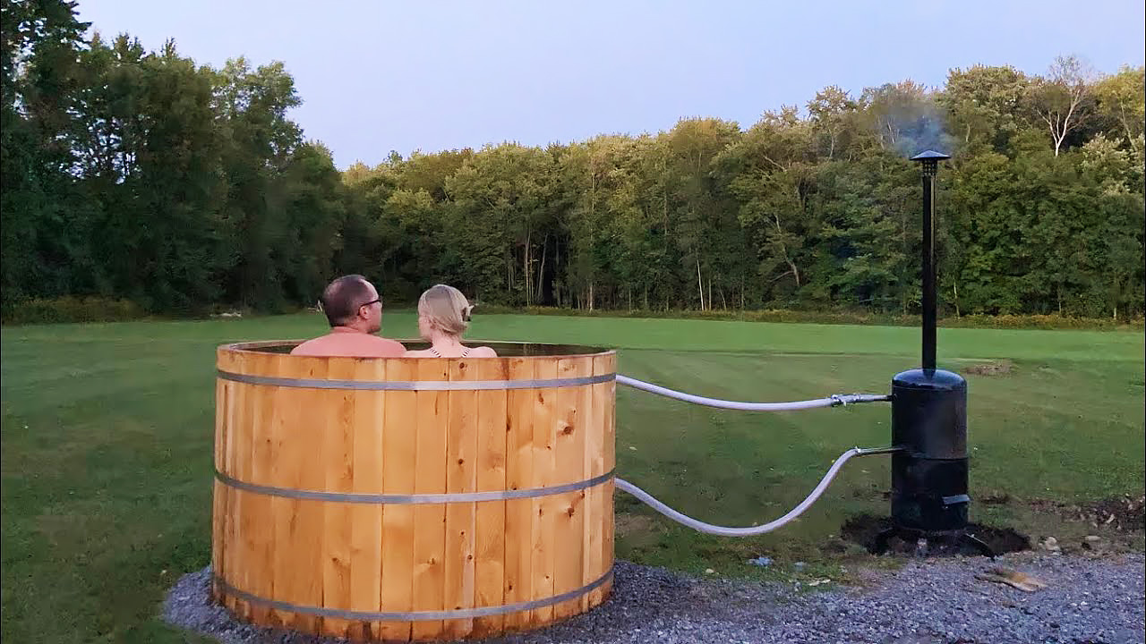 Как сделать деревянную ванну с подогревом от дровяного котла На соответствующем деревообрабатывающем оборудовании из бревен получаем брус обрезной, который распускаем на обрезные доски, тщательно оструганные со всех сторон. Сплачиваем доски способом «паз и гребень» и вырезаем круглое днище ручным фрезером, закрепленным к жесткой рейке, ось вращения которой
