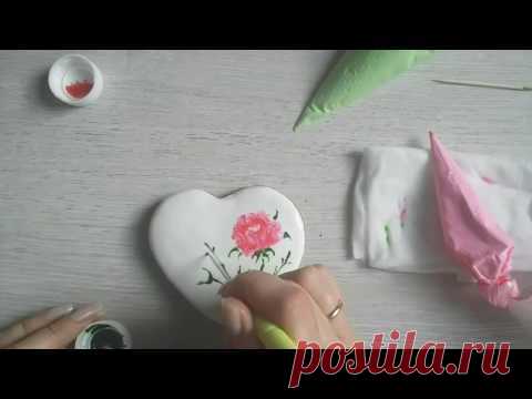 Роспись по мокрому рисунок роза. Роспись пряников с Юлией Милье./how to decorate wet on wet cookie