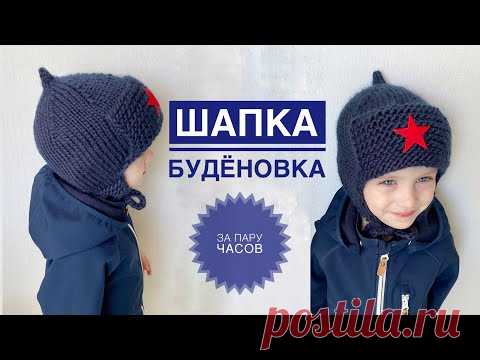 Шапка для мальчика / Буденовка спицами / Шапка спицами для мальчика / Военная шапка спицами