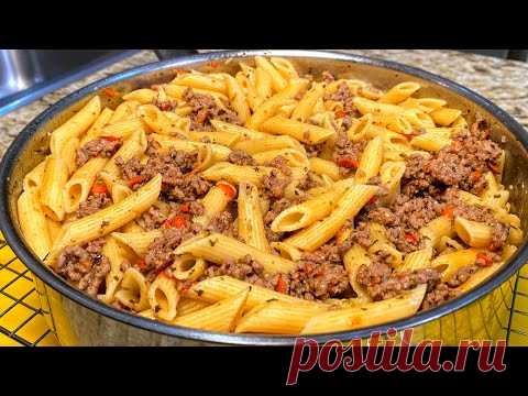 Потрясающее Блюдо из Фарша на Одной Сковороде. Получается много и сытно! Макароны с мясной подливой.
