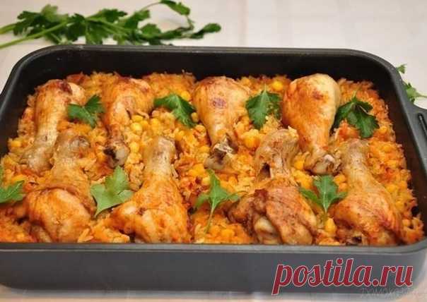 "Ленивые" ножкиИнгредиенты:1 упаковка куриных голеней, 2 моркови, 2 луковицы, 1 банка консервированной кукурузы, стакан (200 мл) риса (у нас сорт Жасмин), 500 мл кипятка или бульона,соль,перец паприка,пряности по вкусу, растительное масло для жарки.Приготовление:1. С кукурузы слить жидкость. Лук очистить и мелко порезать. Морковь очистить и натереть на терке. 2. Обжарить на сковороде лук и морк...