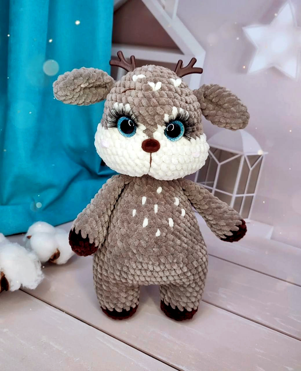 PDF Олень Бемби крючком. FREE crochet pattern; Аmigurumi animal patterns. Амигуруми схемы и описания на русском. Вязаные игрушки и поделки своими руками #amimore - плюшевый олень, оленёнок из плюшевой пряжи.