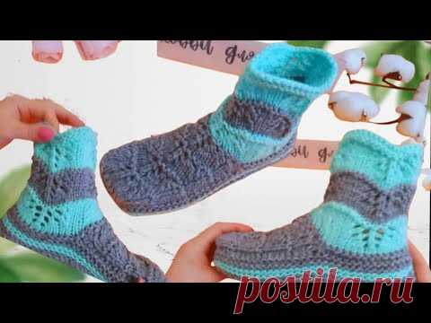 Учимся вязать носочки-следочки спицами,красивым узором. Без шва на подошве.