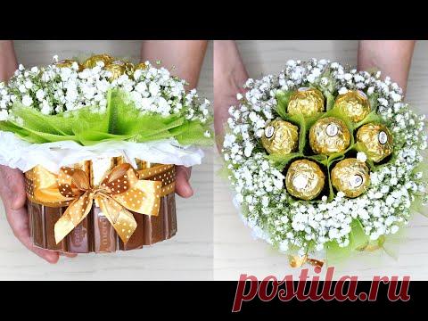 Букет из конфет с Ферреро роше и гипсофилой своими руками / ИДЕЯ подарка на 8 марта